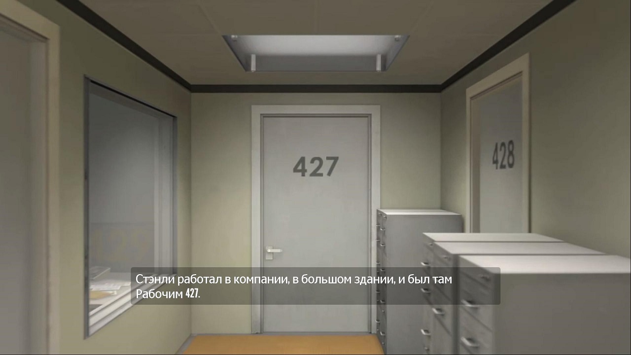 Но идиллию разрушает чудовищная проблема. В этот день никто не присылал Стенли задания для работы, и он не знает, что ему делать. Несколько секунд мы сидим перед монитором, и не понимаем что происходит, осматриваем комнату, пользуясь передышкой, и разминаем спину. Но работы все нет, нужно выйти из офиса и спросить кого-то, что тут происходит. Открыв изнутри дверь кабинета 427, Стенли вдруг понимает, что все вокруг, куда-то исчезли.