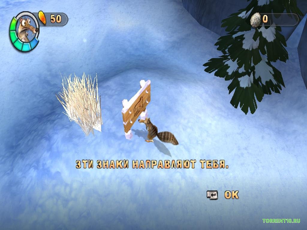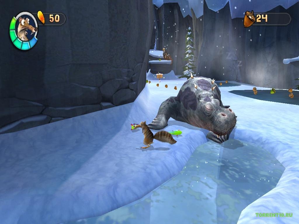 Нашего главного героя зовут Скрэт, собственно у него то мы и будет отнимать заветный орешек, даже не один, а сразу много. Их мы с садистским удовольствием будем топить, бросать, жечь и многое другое. Другие герои мультфильма также встретятся с нами в игре, но только в качестве своеобразного фона, ограбления, но не как второстепенные персонажи. Например, мамонт Менни предстанет перед нашим лицом всего парочку раз за игру, а знаменитый саблезубый тигр будет изредка выглядывать из пещер. Только ленивец удостоился великой чести – стать частью геймплея в некоторых миссиях, за него нам предложат выполнить парочку заданий.