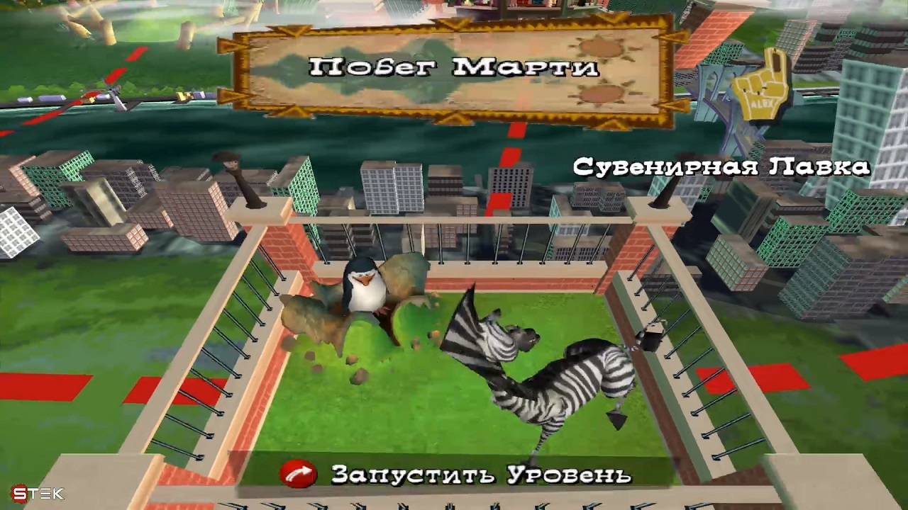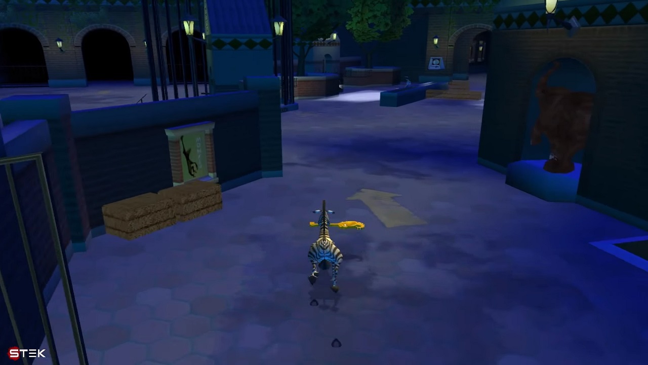 Игроку будет выполнять самые разные задания, управлять вы будете всеми персонажами по очереди в разных миссиях. Каждый из них обладает рядом уникальных возможностей. Например, зебра может бить задними копытами, чтобы разрушать некоторые объекты. Это очень полезно, если вам нужно попасть в какой-нибудь тайник. В тайниках можно найти карточки и монеты, за карточки герой получает новые умения. Например, со старта у Марти нет способности бить задними копытами, а подняв соответствующую карточку, он сможет ее получить. И тут же вам дают ее использовать, нужно будет разбить блоки с сеном, за ними лежат монеты.