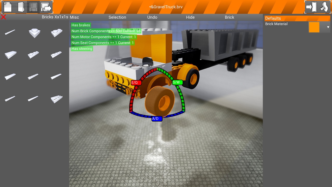 Brick Rigs - это игровой симулятор конструктора Лего. Эти маленькие детали, из которых можно было построить всё-что угодно известны всем, как детям, так и взрослым. В данной игре у вас есть потрясающая возможность построить из них абсолютно любую машину. Какой-то конкретной цели в игре нет. Вы просто можете создать автомобиль и покататься по всей, достаточно обширной, карте. Конструировать свои автомобили вы будете в специальном гараже. Здесь вы сможете освободить свою фантазию, и устанавливать на автомобили такие детали, какие посчитаете нужными. Когда ваша модель будет готова, вы сможете протестировать её в самых разнообразных ситуациях. В вашем распоряжении город с небольшим пригородом, каньоны, пустыни, реки и многое другое. Ваше передвижение никто не будет ограничивать. Но учитывайте, что при авариях и столкновениях всё будет очень реалистично. Водить транспорт, сделанный и Лего достаточно сложно, а при столкновении его можно сильно повредить. Попав в аварию, ваш автомобиль пострадает ровно так, как пострадал бы в реальности.