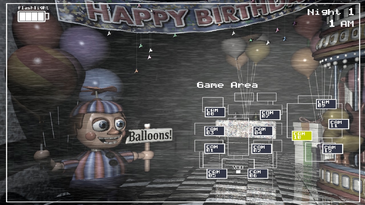 Тем не менее, с такими же проблемами, приходится сталкиваться и нашему главному герою. Он вынужден буквально выживать в этом ресторане, поскольку каждой ночью, так называемые аниматроники выходят на оходу за любым живым существом, которое, как они сами думают, угрожают их дальнейшей жизнедеятельности. Выживать ему необходимо с 12 до 6 утра, в этой игре, таковой процесс должен отнять у вас не больше 8 минут и 37 секунд. Как бы там ни было, главная концепция этой игры - была сохранена, соответственно вам, как и прежде, нужно будет выполнять всевозможные игровые задания на протяжение ночи и пытаться, при всем этом, попросту выжить, скрываясь от многочисленных здешних антигероях, которые в большинстве случаев, представлены в форме обыкновенных аниматроников. В любом случае, вашему вниманию представлен просторный коридор, на территории которого, вы не сможете найти никаких дворей, вместо них, здесь располагаются сразу-же две вентиляционные шахты.