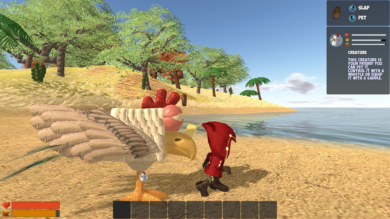 Приключенческая игра CHKN представляет собой конструктор-песочницу, при помощи которого вам предстоит создавать самые невероятные формы жизни. С ним вы отправитесь в путешествие с целью собрать различные ресурсы, необходимые для сохранения жизни. По пути будут встречаться прочие виды живых существ, и вы сможете экспериментировать с ними. В самом начале игры нужно построить свою ферму и оборудовать ее всем необходимым. Затем создаете питомца, который может частично напоминать таких домашних животных как корова, коза, овца или собака. Чтобы создать необычное существо, занимайтесь скрещиванием различных видов животного мира с минералами, которые служат своеобразным катализатором для получения новых существ. Каждое из творений отличается своим характером и особенностями, поэтому. Чтобы контролировать их, придется использовать разнообразные способы.
