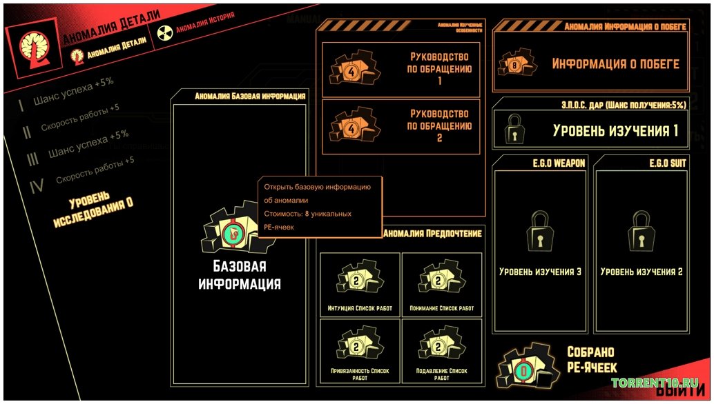 История игры рассказывает о странной лаборатории, где необычный гениальный профессор решил собрать всех монстров, которые лишали их необычной энергии. Монстры упоминаются здесь как аномалии. Все они страшные, опасные и очень мощные, но следите за ними, и вы просто хотите. Вам нужно собрать команду в Lobotomy Corporation и позаботиться о лаборатории. Но не думай, что это легко. Суть игры заключается в следующем: вы должны заказывать у сотрудников лаборатории, отправлять их в девиационные палаты, строить отношения с монстрами и делать все, что в наших силах, чтобы не дать профессору необходимую им энергию. Все кажется простым, но это не так. Во-первых, все ваши сотрудники - нормальные люди, склонные к безумию, страху, слабости и многому другому. Во-вторых, аномалии всегда более сложны и опасны. И в-третьих, в лаборатории есть случаи, когда сотрудники могут начать умирать. Lobotomy Corporation скачать торрент на русском может каждый по ссылке ниже.