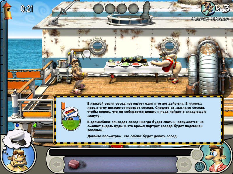 Сюжет игры очень прост и в этом его достоинство. Всем знакома неприязнь к соседям, особенно к злым и толстым. История такова, что мы снимаемся в реалити шоу, главный герой Вуди достает своего соседа на камеру, однако сам сосед об этом не знает. Цель каждого эпизода – довести до бешенства мистера Ротвейлера. В прошлой части игры была не до конца раскрыта тема ненависти Вуди к своему соседу, точнее ее вовсе не затрагивали. Она просматривалась разве что в весьма странном отношении соседа к домашним животным. Теперь же разработчики решили показать, что наша миссия – это праведная кара за все плохие поступки этого человека. Нам покажут, как Мистер Ротвейлер обижает ребенка, дразнит животных в клетке и тому подобное.