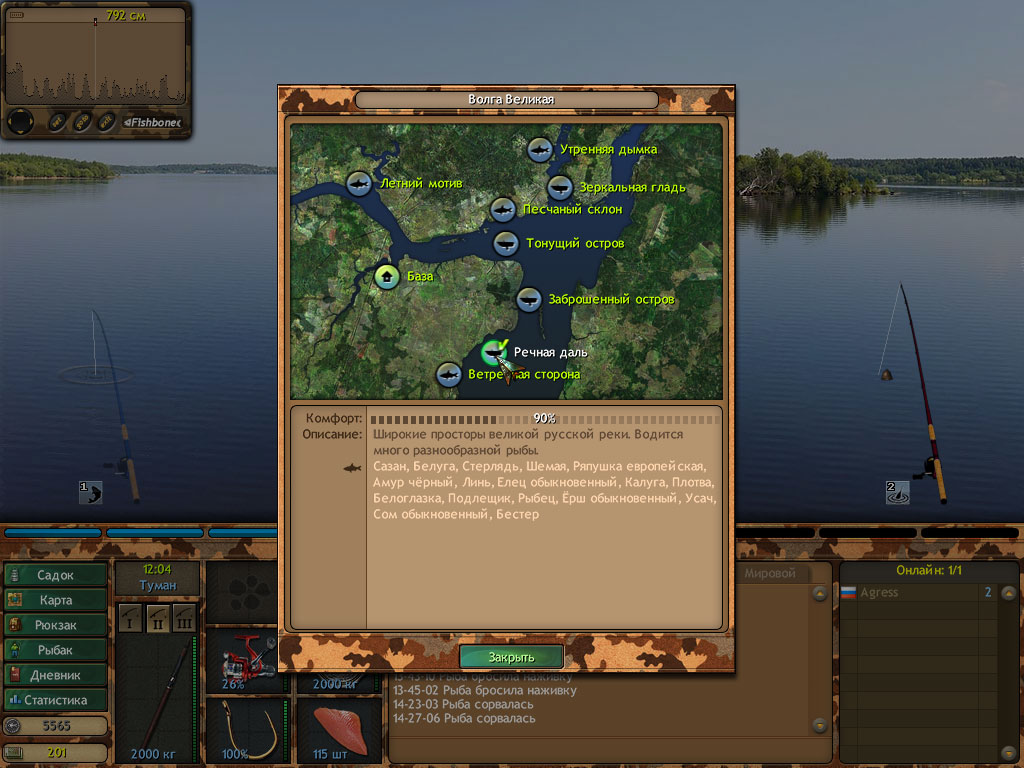 Это только не очевидные параметры, что касается наживок, величины крючка, и толщины лески даже упоминать не стоит, все параметры играют очень важную роль в ловле рыбы. В игре помимо обычного соперничества пользователей, есть еще и турниры, однако не спешите записываться туда, если вы новичок, то выиграть его не получится, ведь для этого нужна хорошая экипировка, а самое главное – опыт и знания.