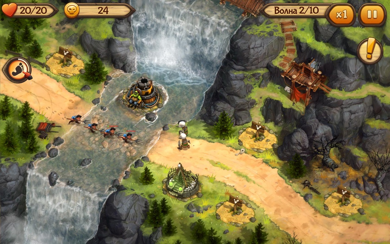 • Орочья пушка стреляет медленно, но наносит огромный урон. Каждый снаряд взрывается и дамажит ближайших врагов. Такое медленное ядро не способно попасть по воздушному юниту, за то отлично расправляется с любым типом наземных врагов.